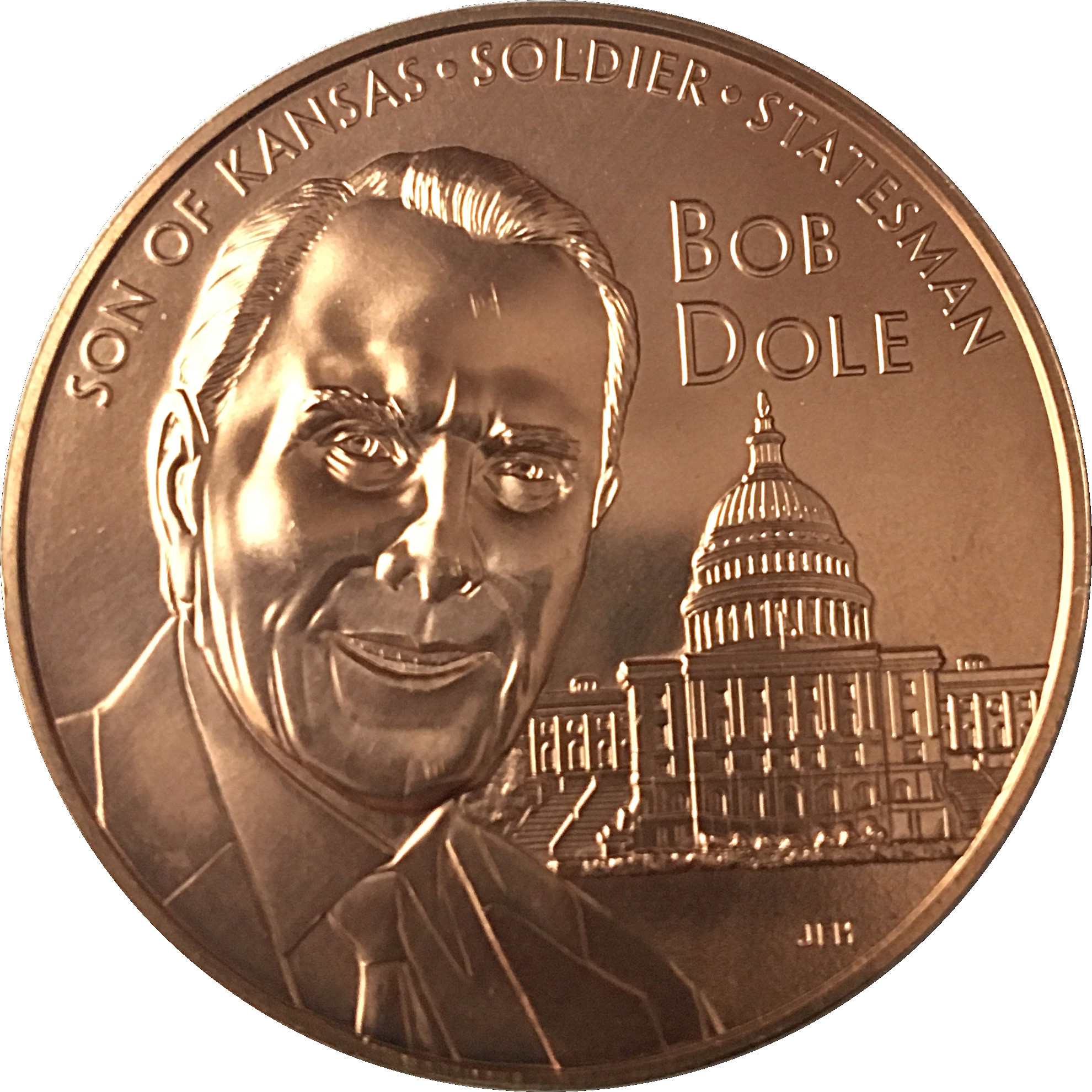 Опис: На аверсі (лицьовій стороні) медалі зображено портрет сенатора Боба Доула на тлі будівлі Капітолію США.