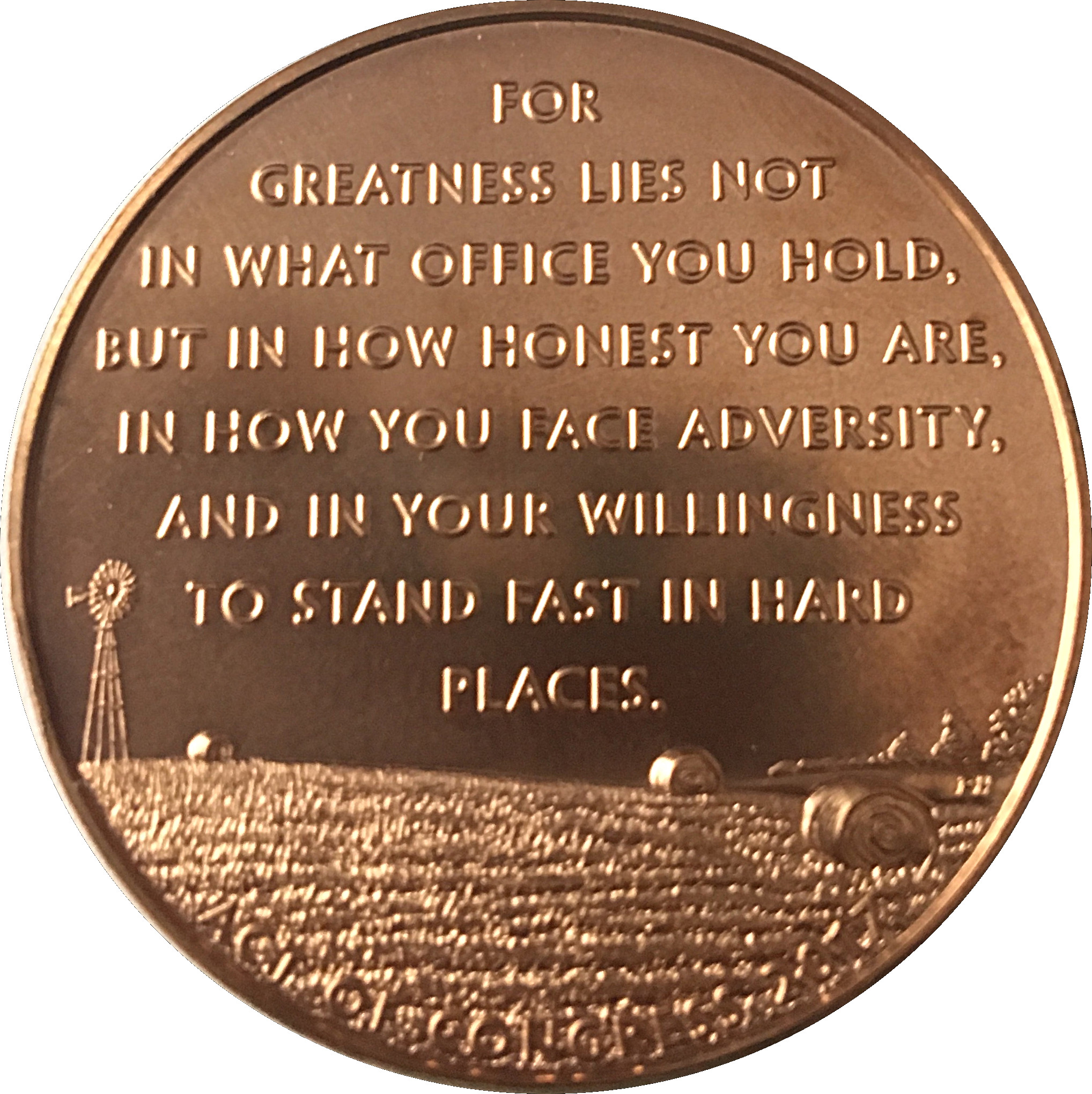 FOR GREATNESS LIES NOT IN WHAT OFFICE YOU HOLD, BUT IN HOW HONEST YOU ARE, IN HOW YOU FACE ADVERSITY, AND IN YOUR WILLINGNESS TO STAND FAST IN HARD PLACES.