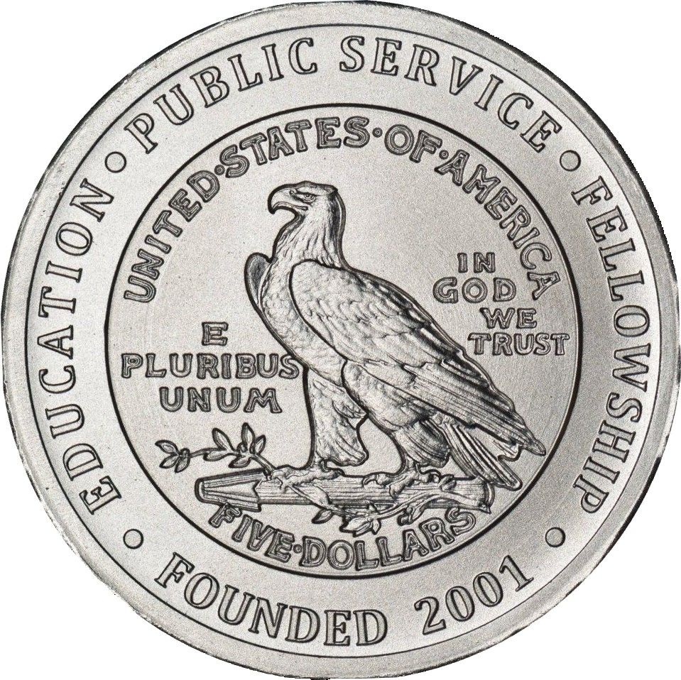 Опис: Репліка реверсу золотої монети номіналом 5 доларів із зображенням голови індіанця Бели Лайона Пратта, оточеного написом.