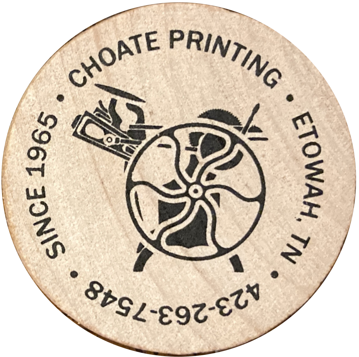 Дерев'яна монета номіналом 5 центів — Choate Printing, 200-річчя округу Макмінн Сполучені Штати