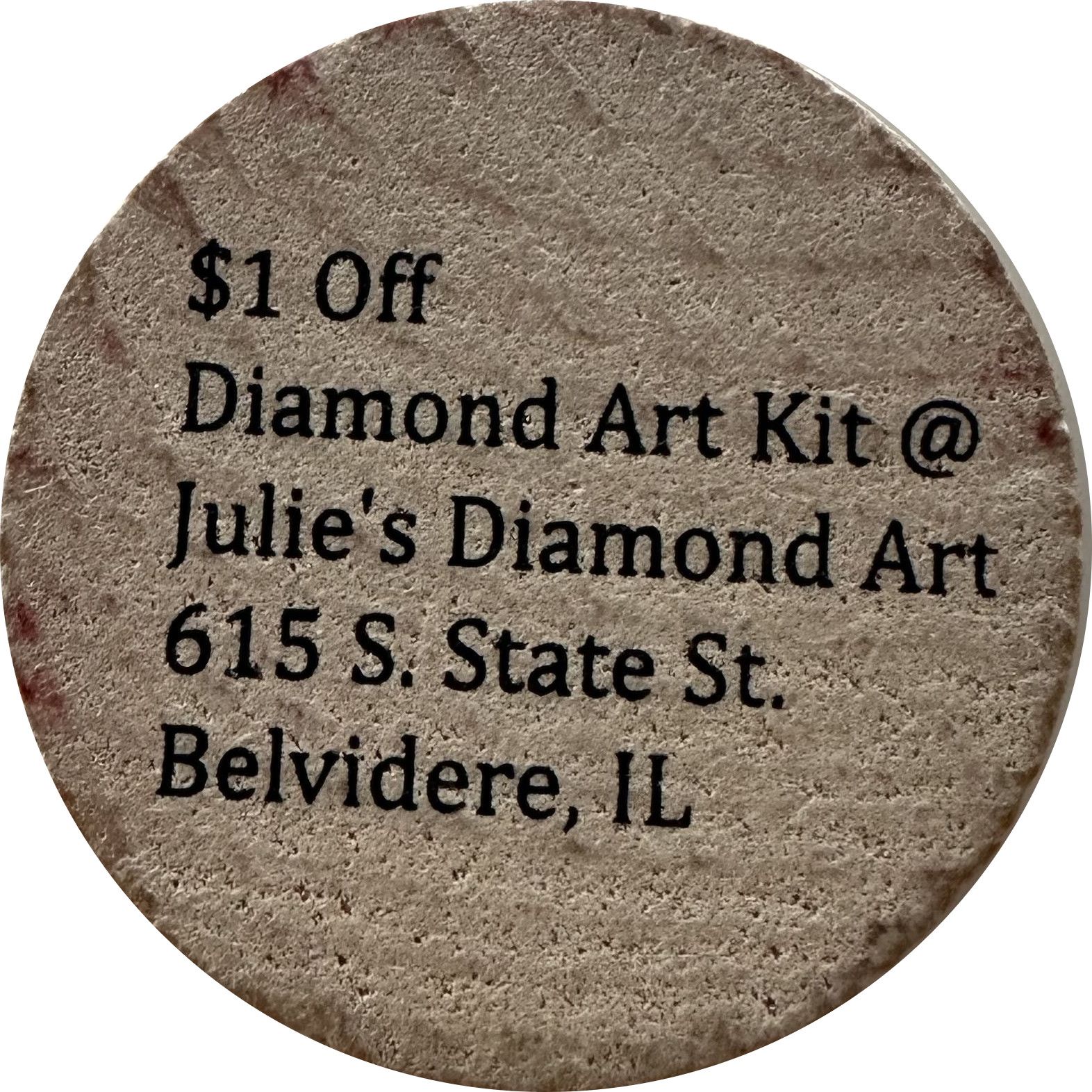 Назва: Дерев'яна монета в 5 центів — Julie's Diamond Art (Белвідер, Іллінойс)
