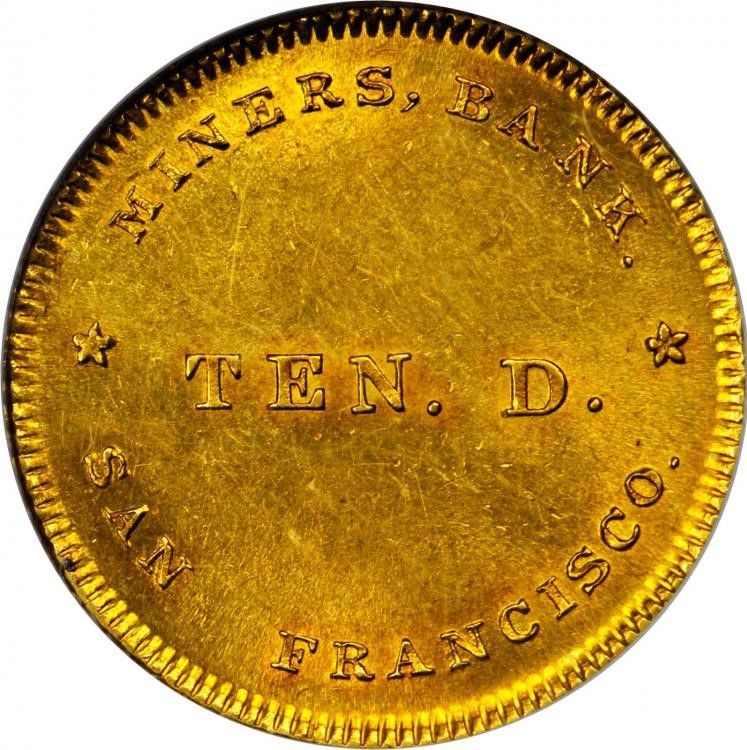 10 доларів — Банк гірників 1849 – 1849 Каліфорнія