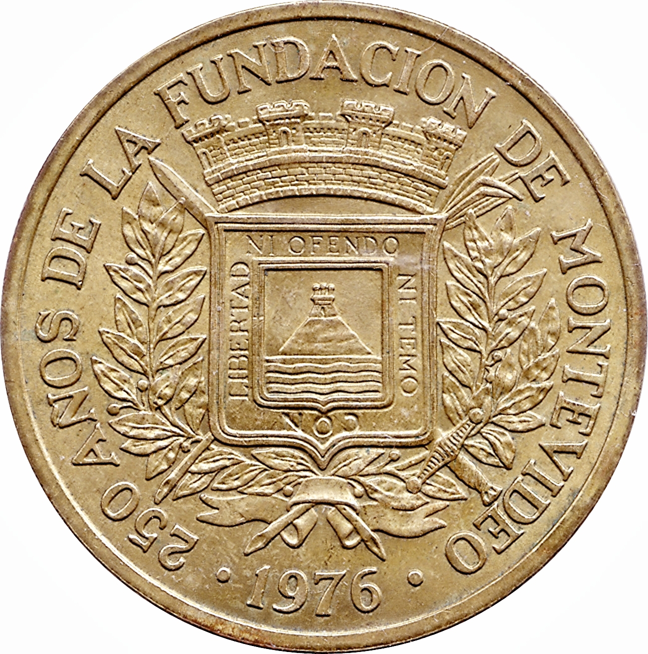 Опис: Герб департаменту Монтевідео, дата в екзергу. Напис на гербі означає: «ЗІ СВОБОДОЮ Я НЕ ОБРАЖАЮ І НЕ БОЮСЯ».