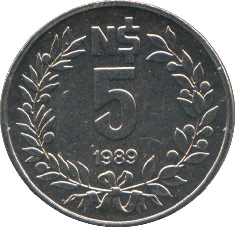 5 нових песо 1989 – 1989 Уругвай