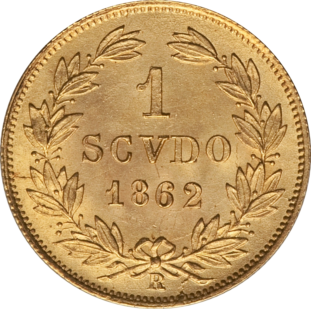 1 Scudo d'Oro — Пій IX (більший діаметр) 1858 – 1865 Папська держава