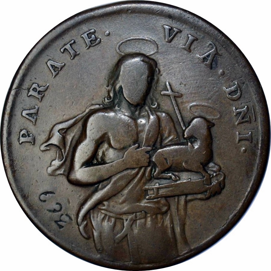 Опис: Іоанн Хреститель та Агнус Деї (Святе Агнче Боже) стоять на Біблії. Номерування у лівому полі, оскільки всі зразки призначені для випуску