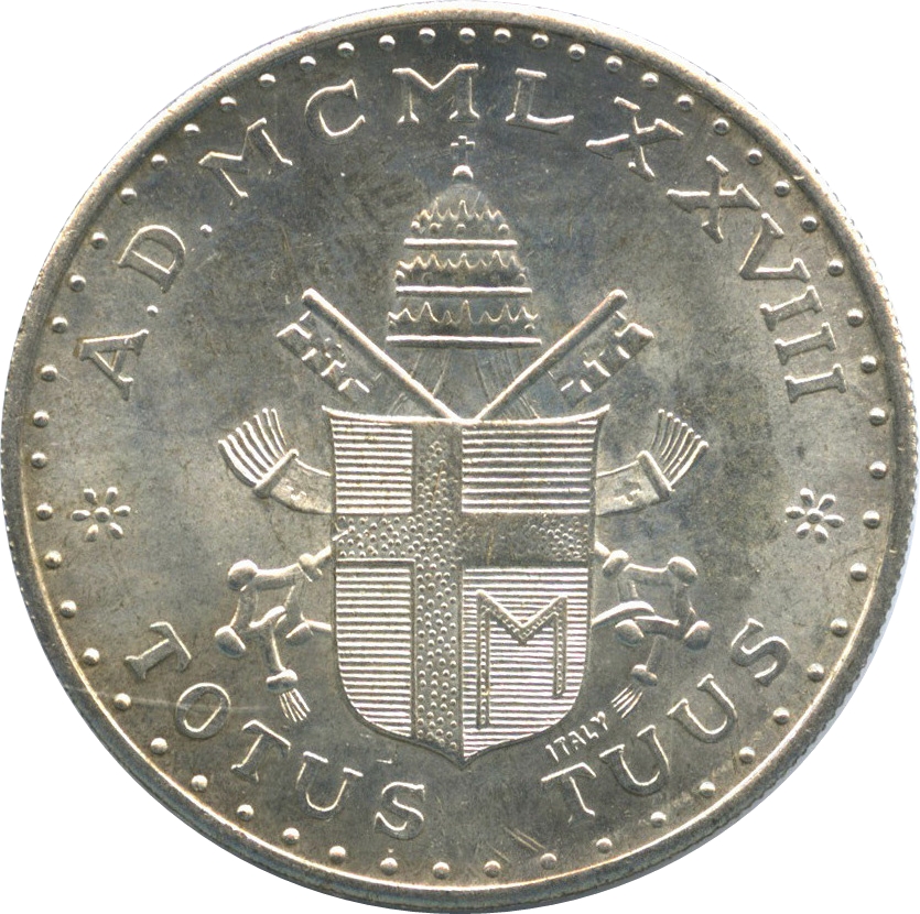 Опис: Герб Папи Івана Павла, розділений латинський напис навколо. Anno Domini (Рік Господній латиною) 1978. Totally Thine (з посиланням на Діву Марію, яку Папа Іван Павло обожнював).