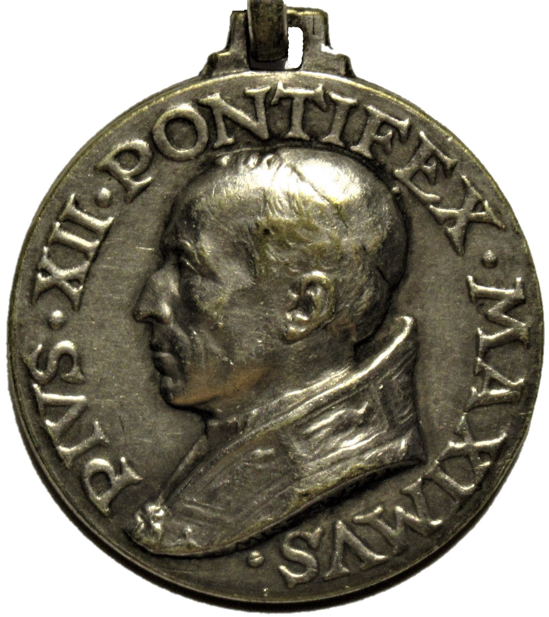 Опис: Портрет Пія XII, звернений вліво, навколо — напис. Ім'я гравера в скороченому вигляді.