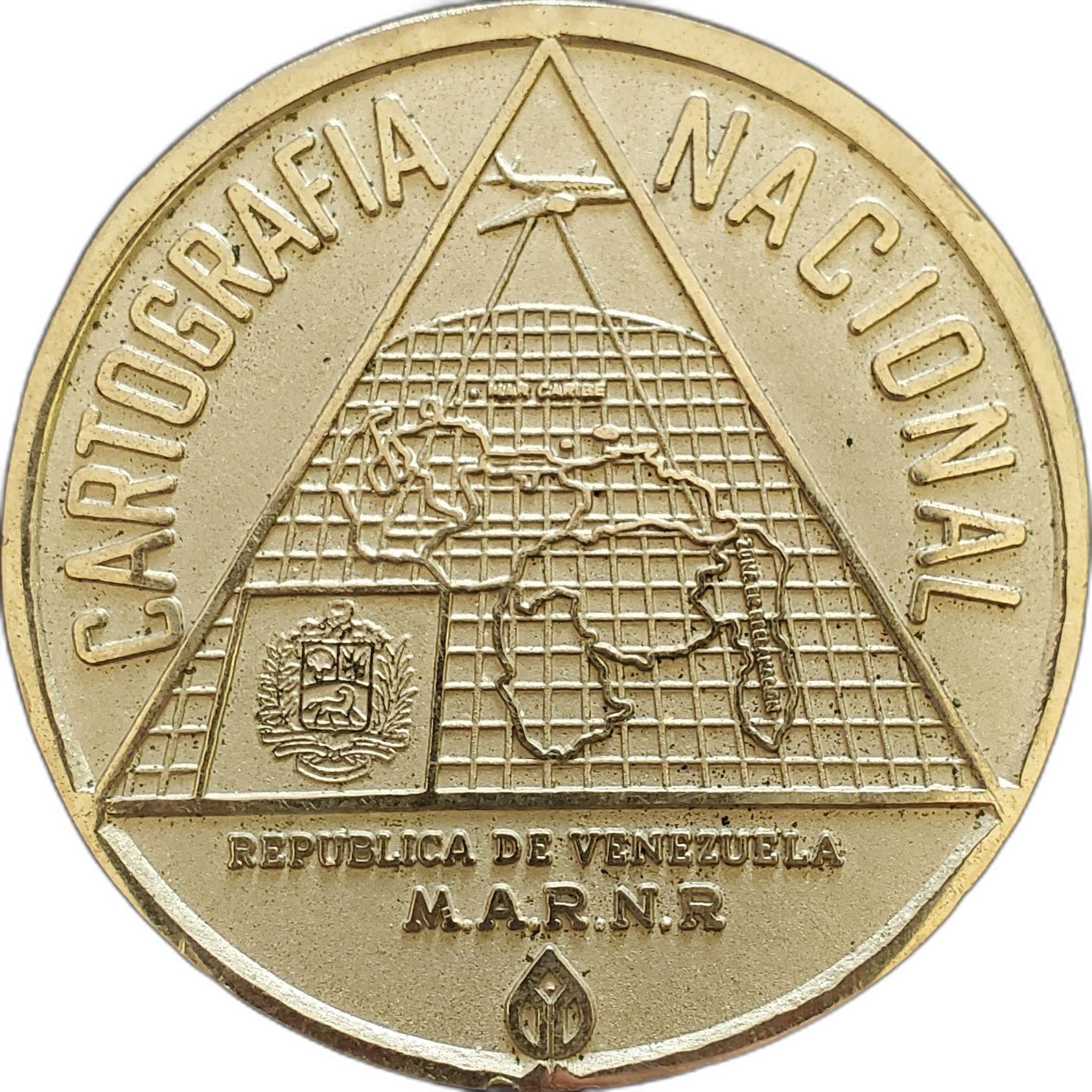Опис: Рівносторонній трикутник, обмежений краєм медалі. У нижній частині, під трикутником, розміщено логотип MARNR. Усередині трикутника зображено частину глобуса, розділеного на сітку. Над цим глобусом летить літак, який проектує трикутник вниз на карту Венесуели, розділену на муніципалітети. Ця карта Венесуели включає спірний східний регіон Гайани (Guayana Esequiba). У нижньому лівому куті трикутника знаходиться квадрат, що містить герб Венесуели.