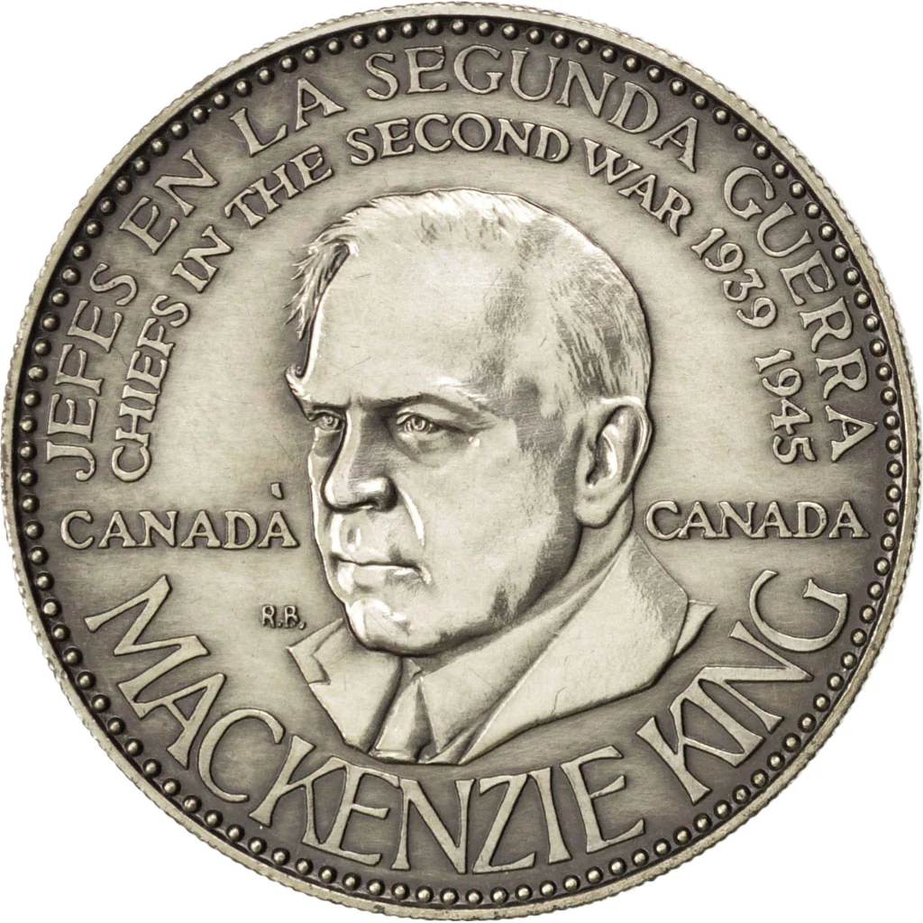 Опис: Вільям Маккензі Кінг ліворуч, текст іспанською та англійською мовами: назва серії зверху, ім'я особи знизу, країна з боків.