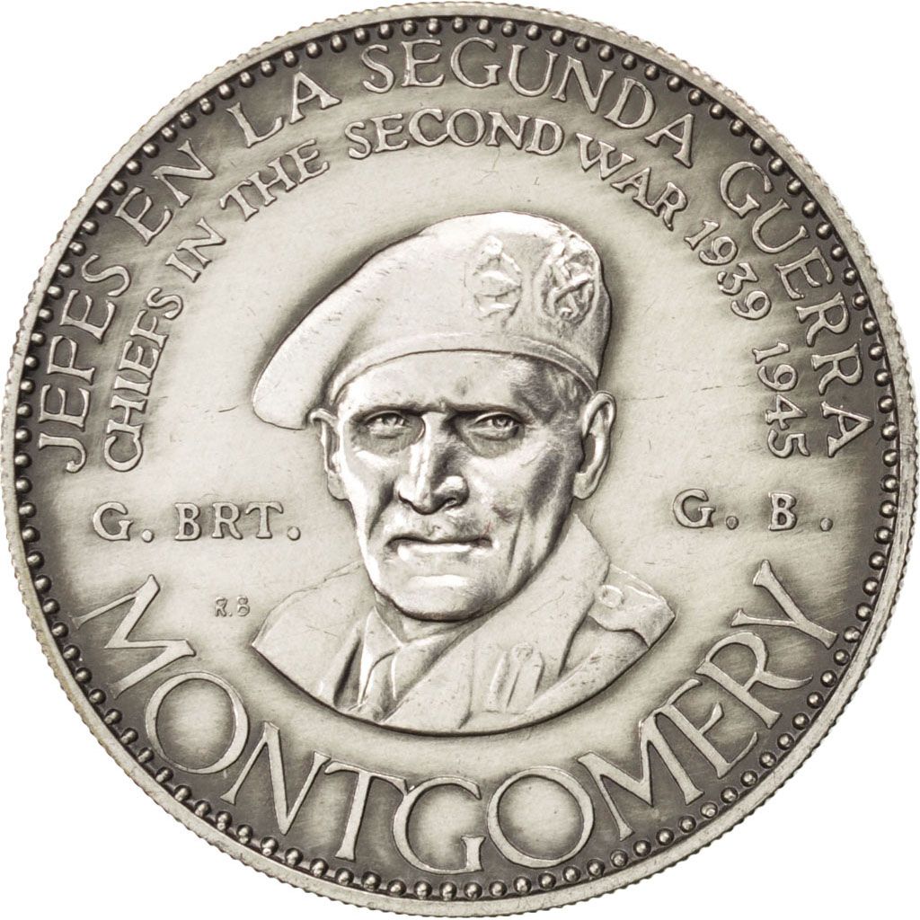 Опис: Бернард Монтгомері, обернений ліворуч, текст іспанською та англійською мовами: назва серії зверху, ім'я особи знизу, країна з боків.