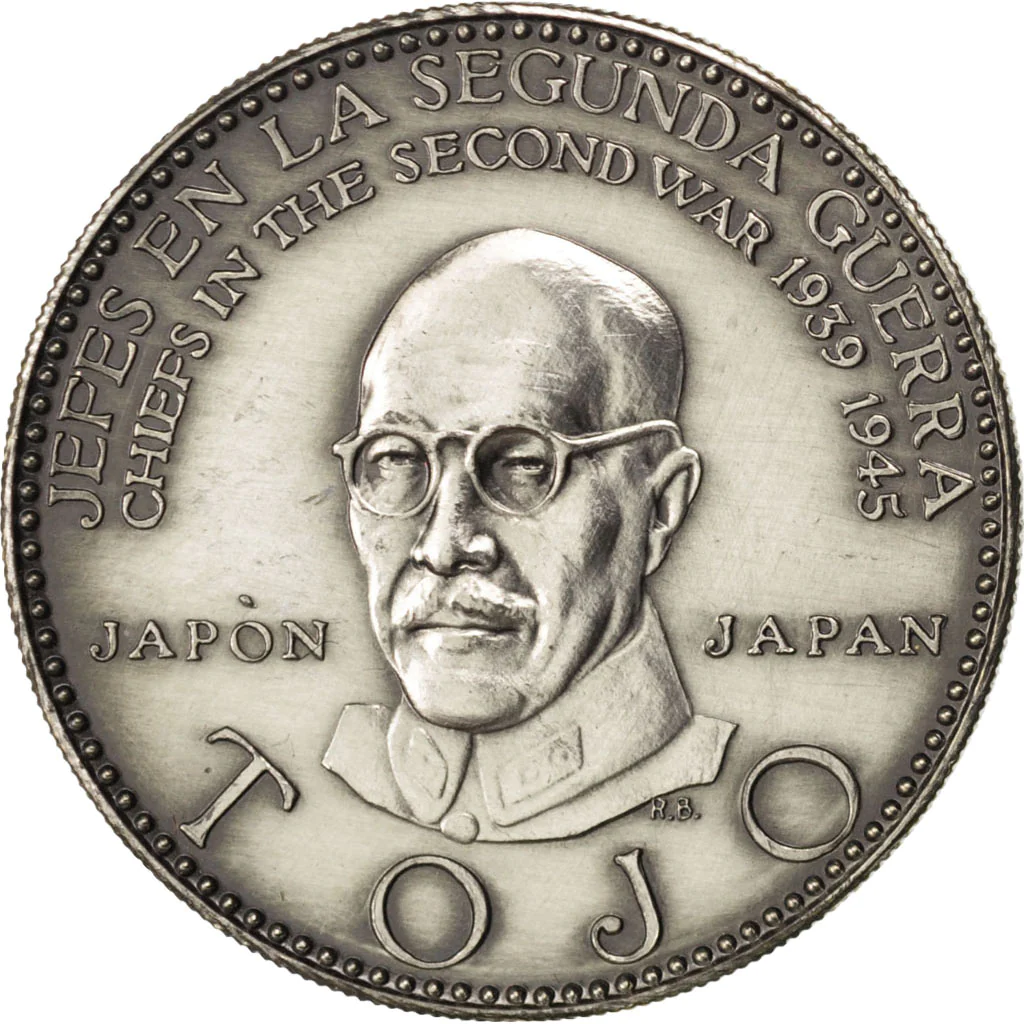 Опис: Хідекі Тодзьо, обернений ліворуч, текст іспанською та англійською мовами: назва серії зверху, ім'я особи знизу, країна з боків.