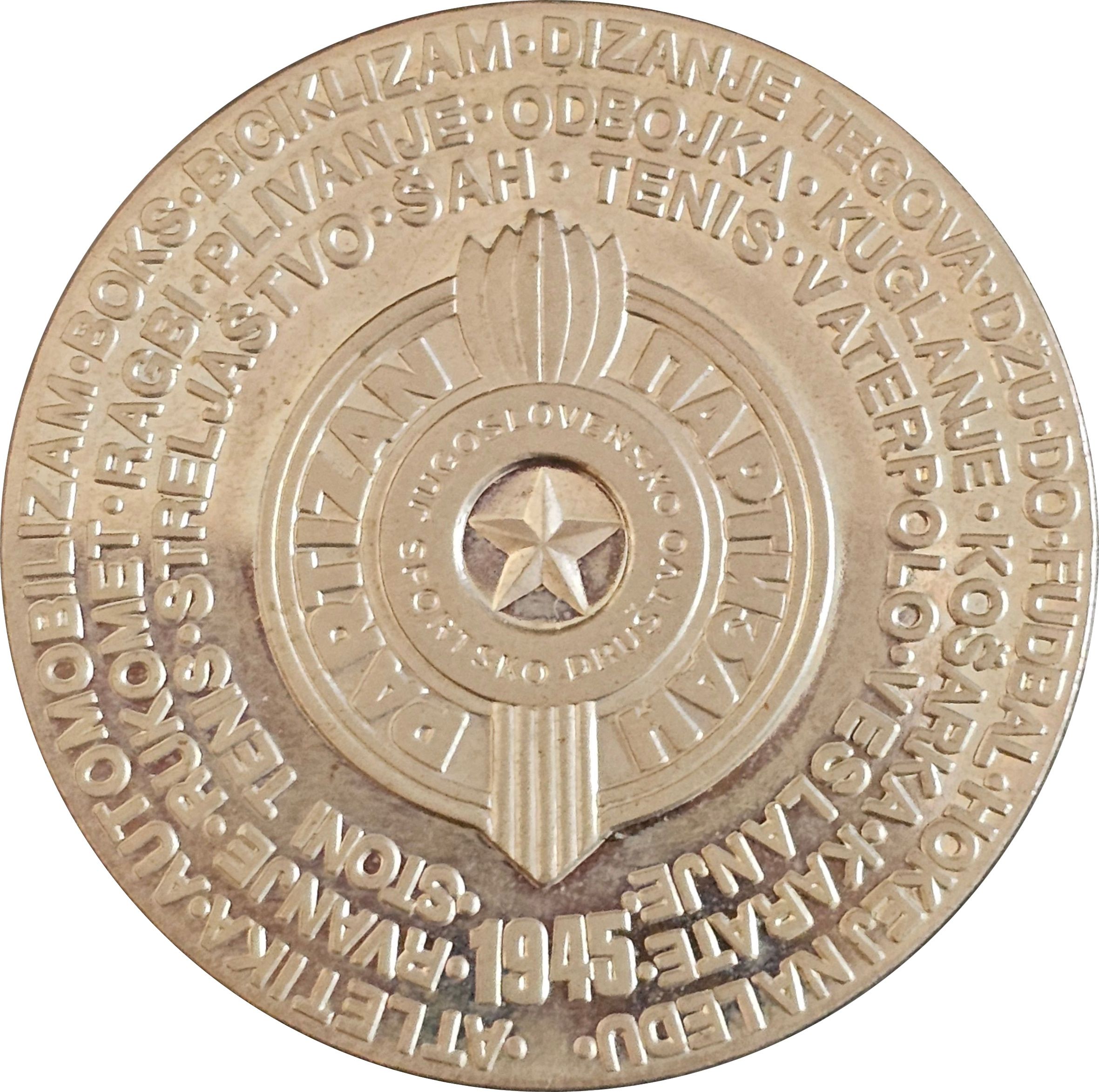 Медаль — Спортивне товариство «Партизан» Югославія