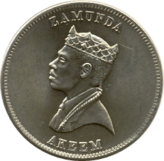 Опис: Бюст принца Акіма ліворуч, назва країни у вигнутому написі зверху, ім'я принца у вигнутому написі знизу.