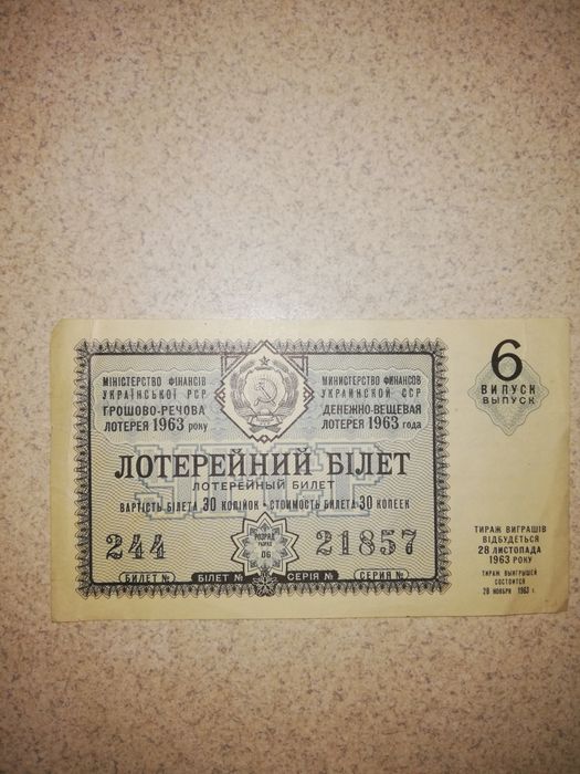 Советский лотерейный билет 1963 года. В нормальном состоянии, кого-то интересует?