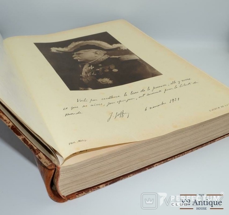 Шикарное издание! Альбом состоит из двух томов. Фотографическая и документальная история воссоздана в хронологическом порядке с использованием клише и рисунков опубликованых L’Illustration Paris с 1914-1921 год. Информация из рекламы подписки того времени: 2641 иллюстрация (из них 148 цветных) 38 портретов генералов и военачальников вклеенных на паспарту 17 ранее не опубликованых карт Размер 30*40 см Общий вес двух томов не менее 12 киллограмм