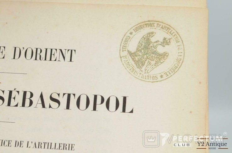 Перший том Книга видана 1859 року, зберігалася в Ла-Рошелі (є друку). Дуже докладний опис ходу облоги Севастополя та дій французької артилерії під час облоги у 1854-1856 роках. Розміри: 27,5х23х4,5.