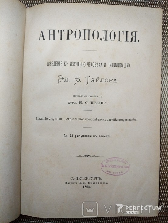 Опис: Антропология сведения к изучению человека и цивилизации 1898 г