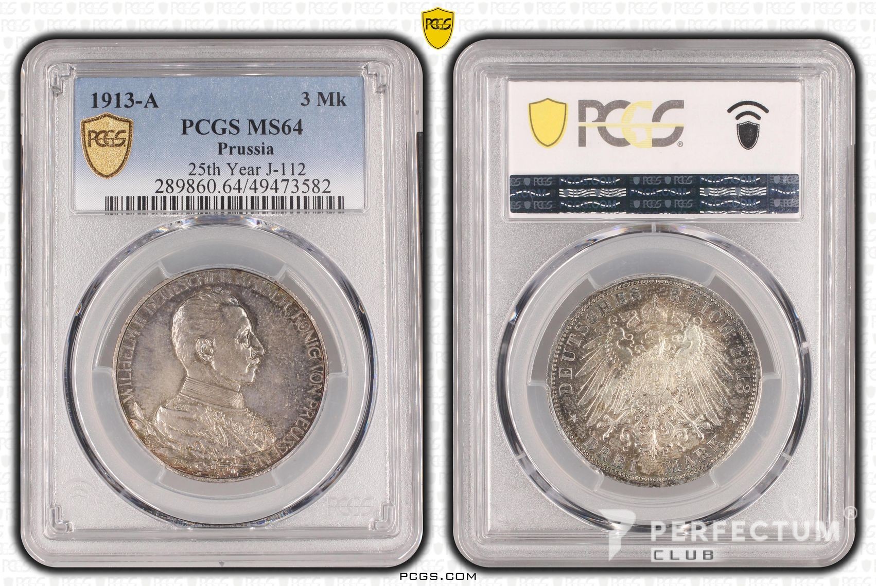 Назва: 3 марки — Вільгельм II (правління) 1913 Мундир pcgs MS 64