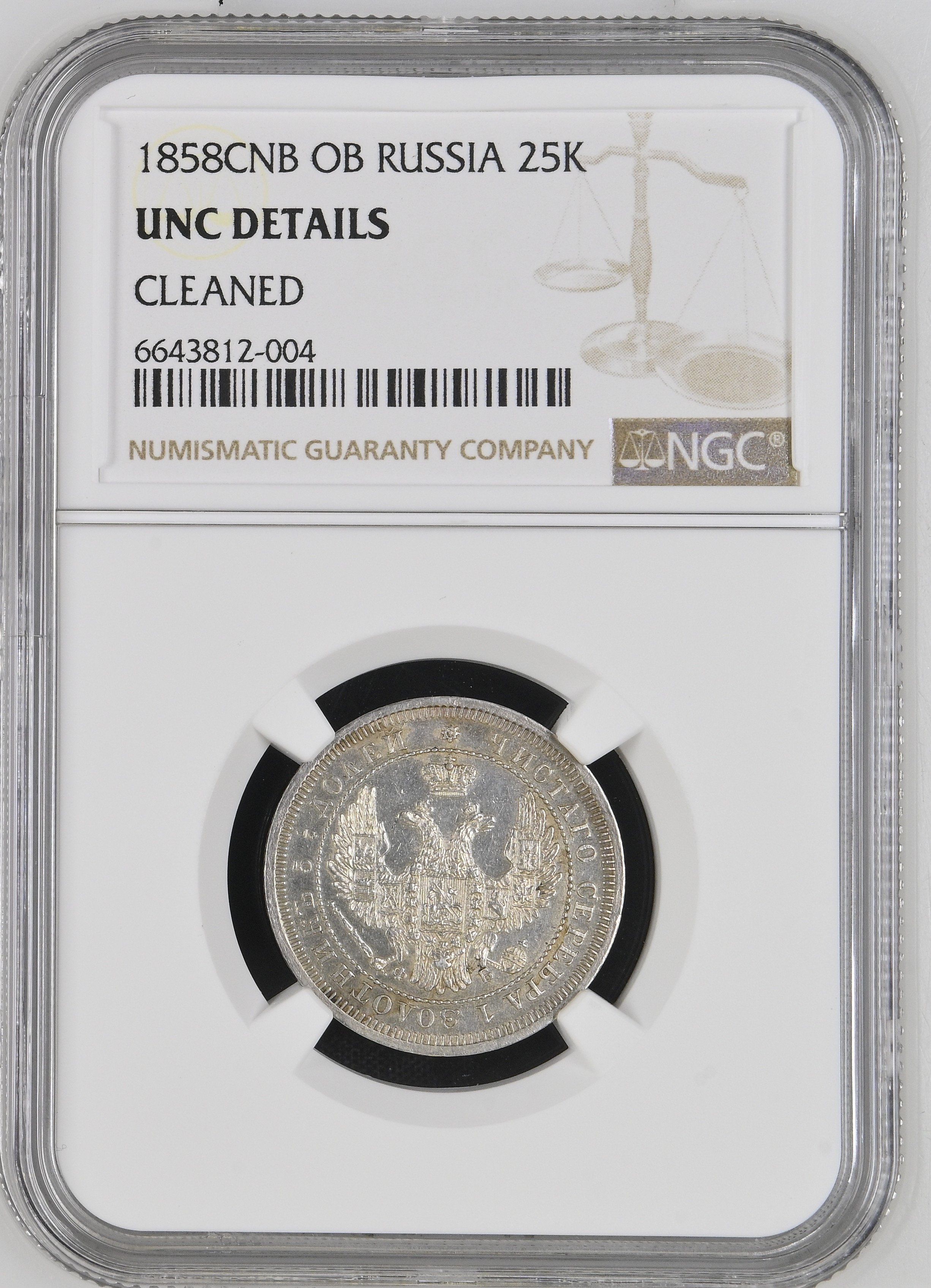25 копійок Олександр II 1858 СПБ unc details ngc