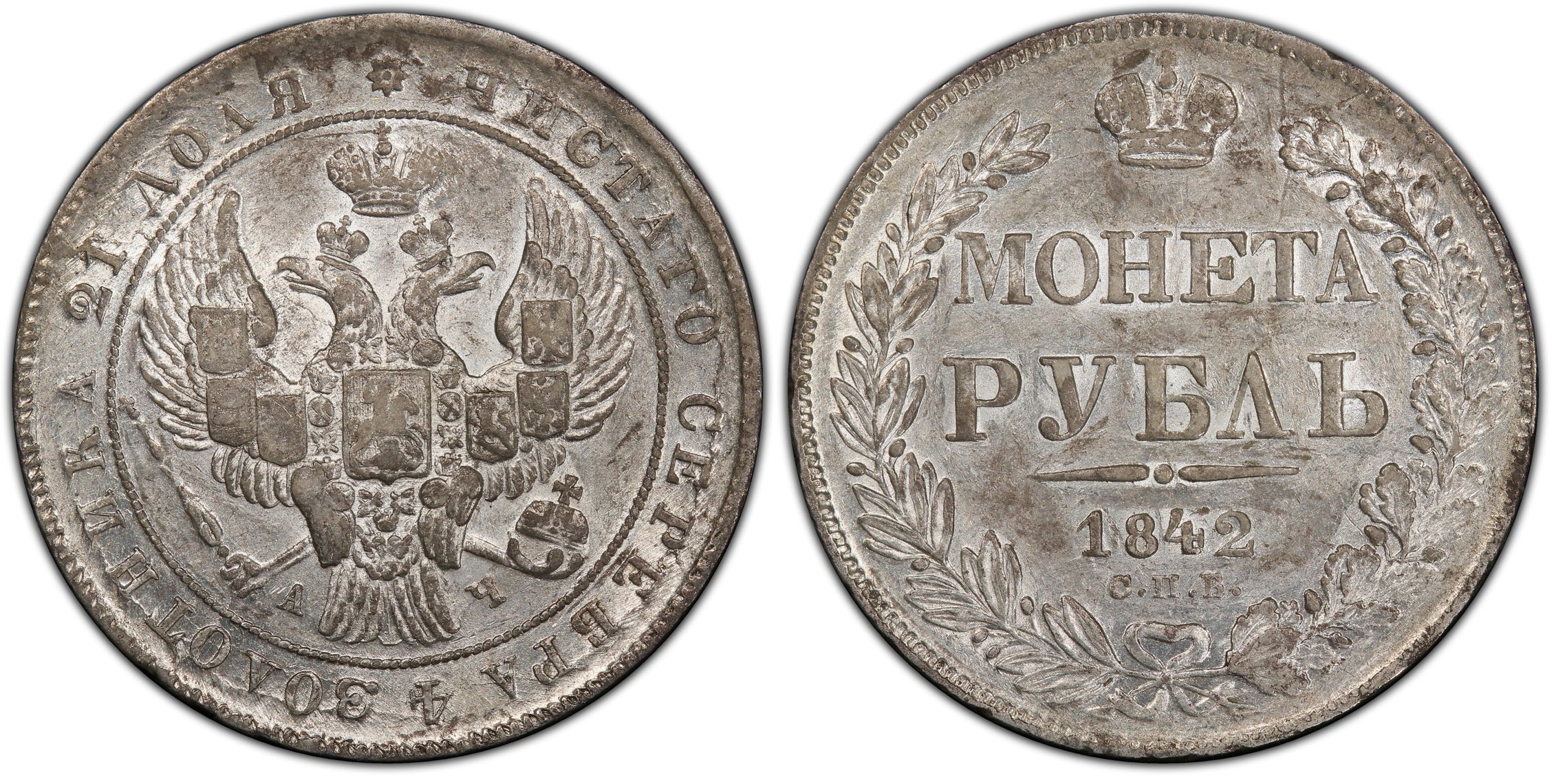 1 рубль Микола I 1842 спб АЧ pcgs au55