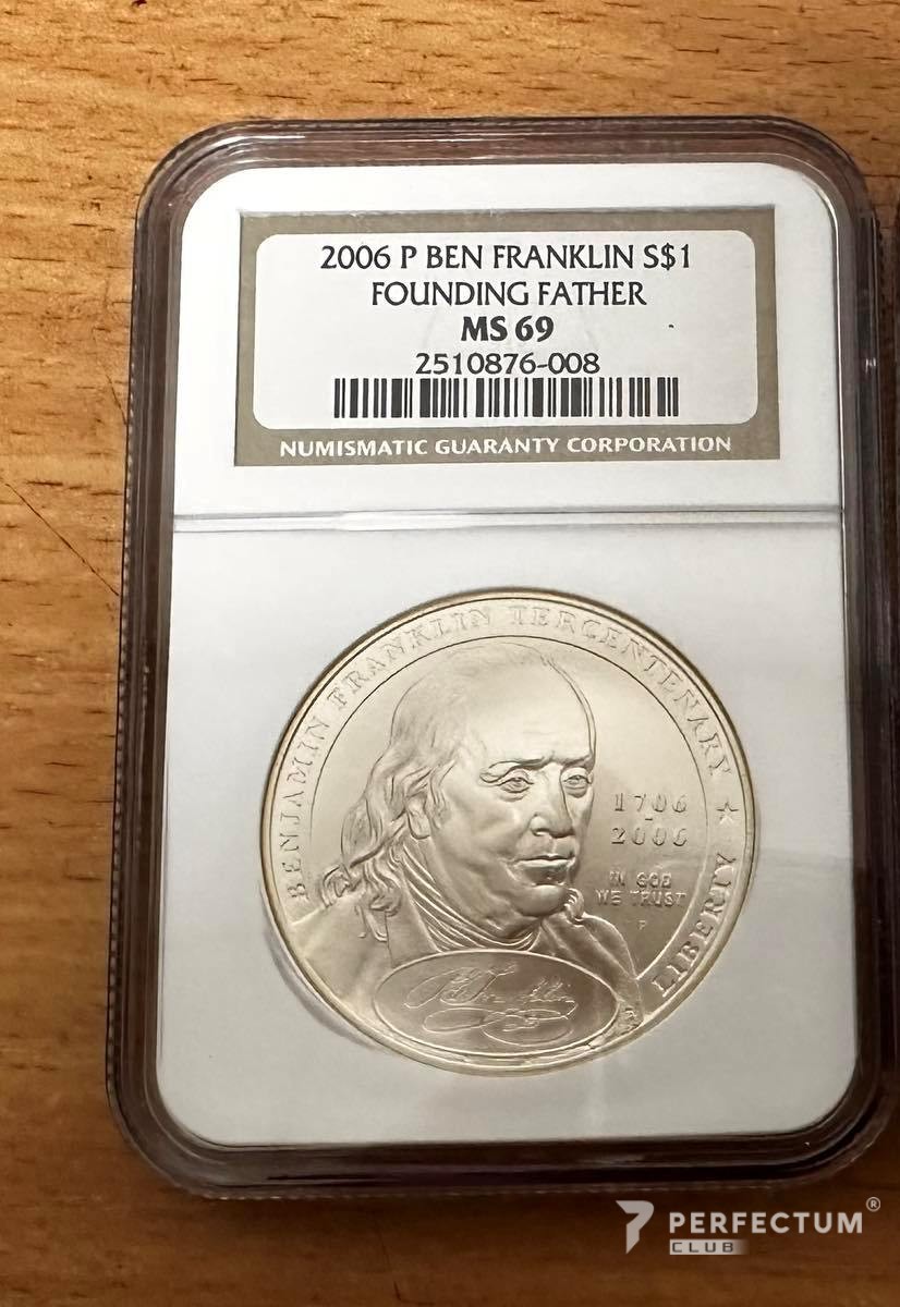 1 долар (300-річчя Бенджаміна Франкліна, батька-засновника) 2006 Франклин NGC MS69