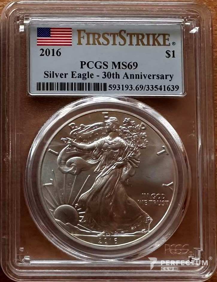 1 долар «Американський срібний орел» (інвестиційна монета) 2016 PCGS MS69