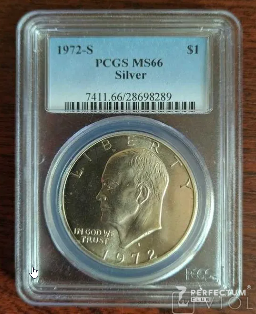 1 долар «Долар Ейзенхауера» (срібна колекційна монета) 1972 слаб MS66