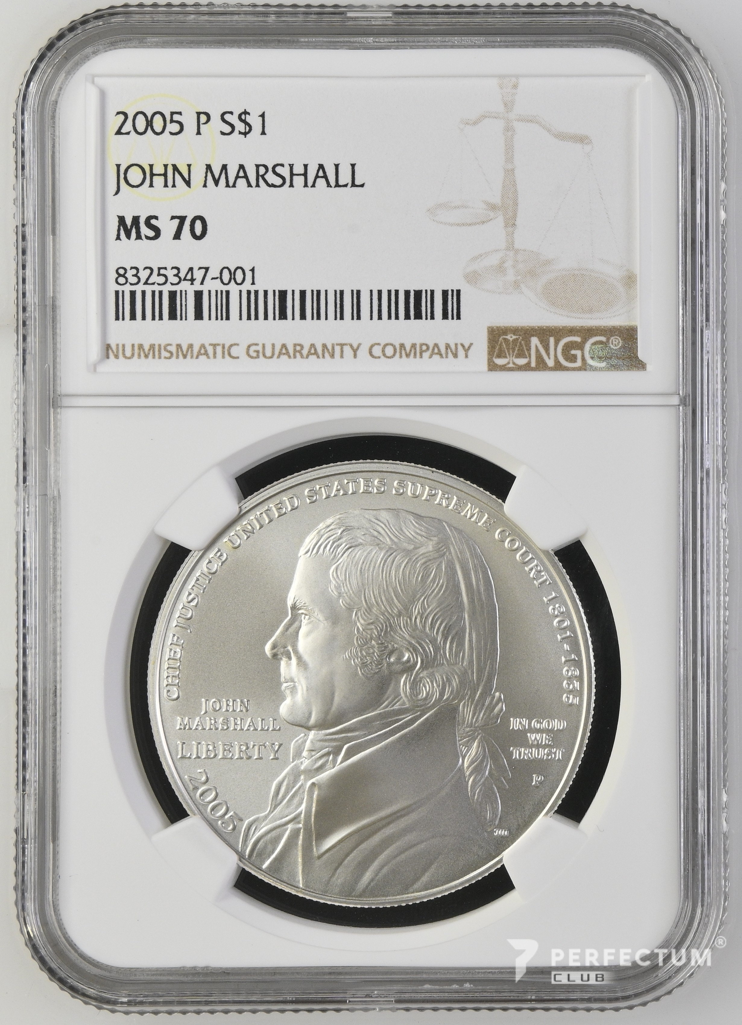 1 долар (голова Верховного суду Джон Маршалл) 2005 Джон Маршалл NGC MS70