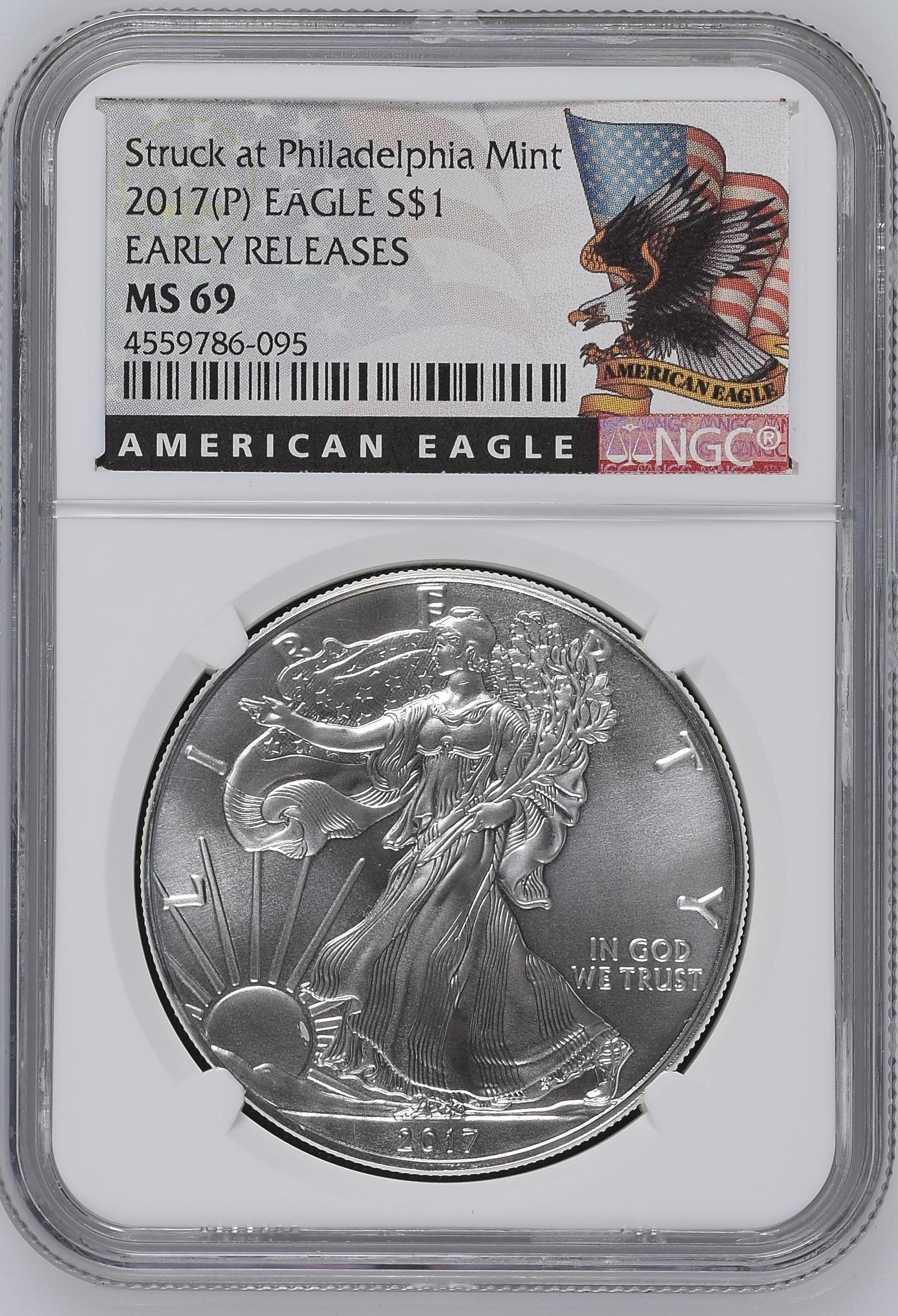 1 долар «Американський срібний орел» (інвестиційна монета) 2017 NGC MS69