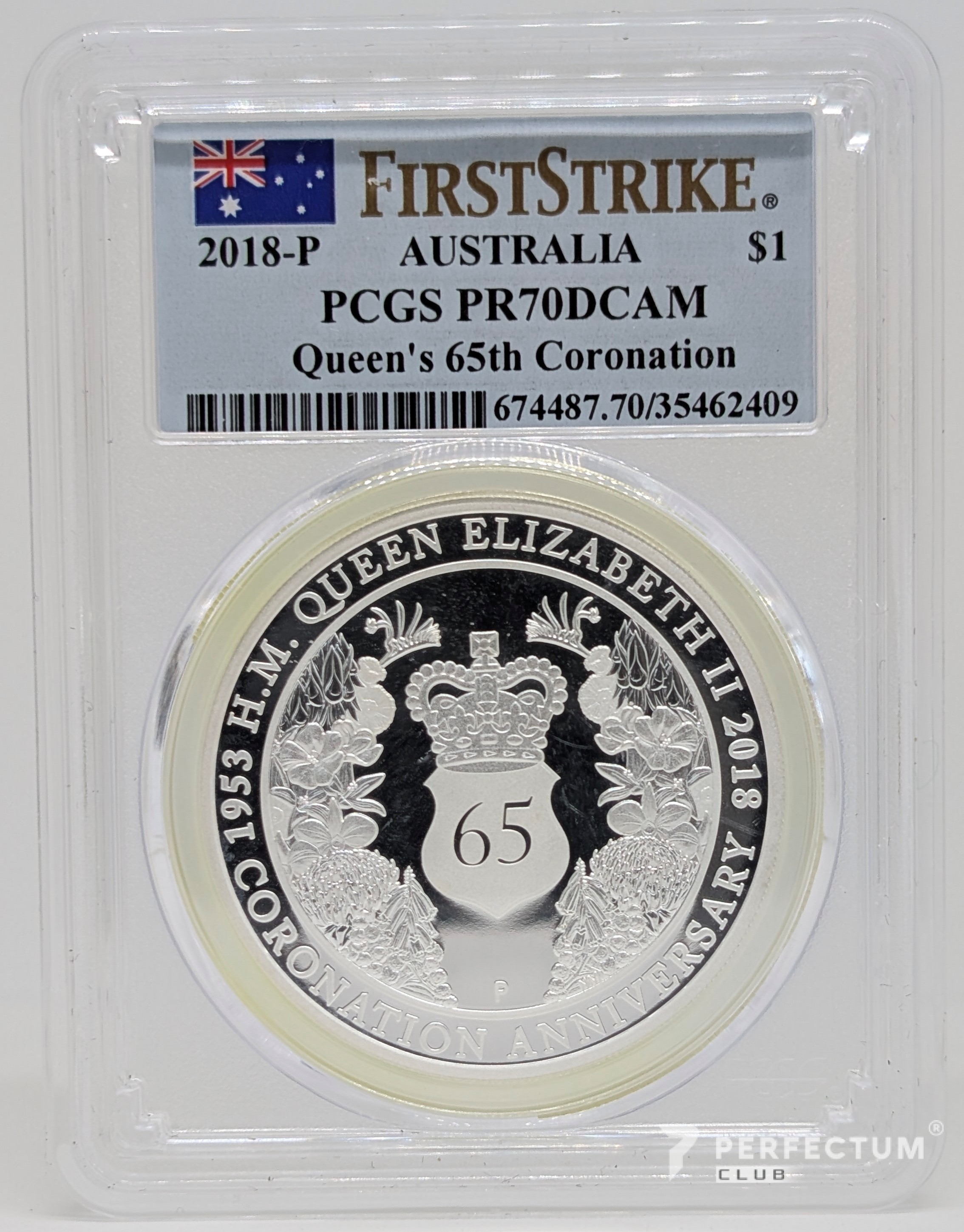 1 долар — Єлизавета II (4-й портрет — 65-та річниця коронації — срібна проба) 2018 PCGS PR70DCAM