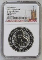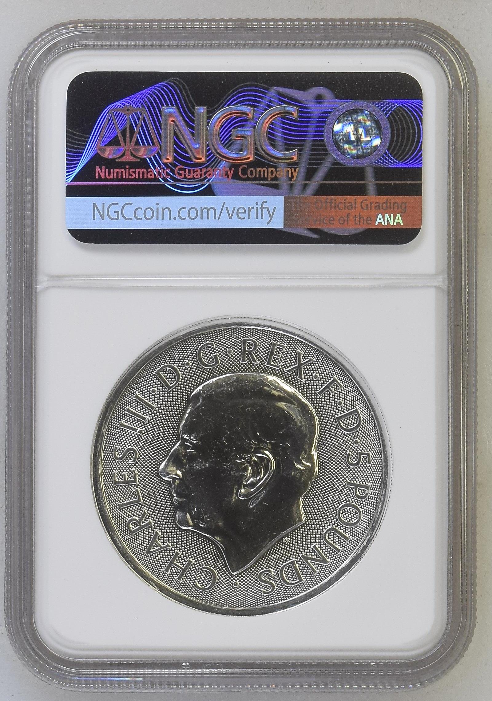 2 фунти — Карл III (Британія та Свобода; 1 унція чистого срібла) 2024 ms69 pcgs