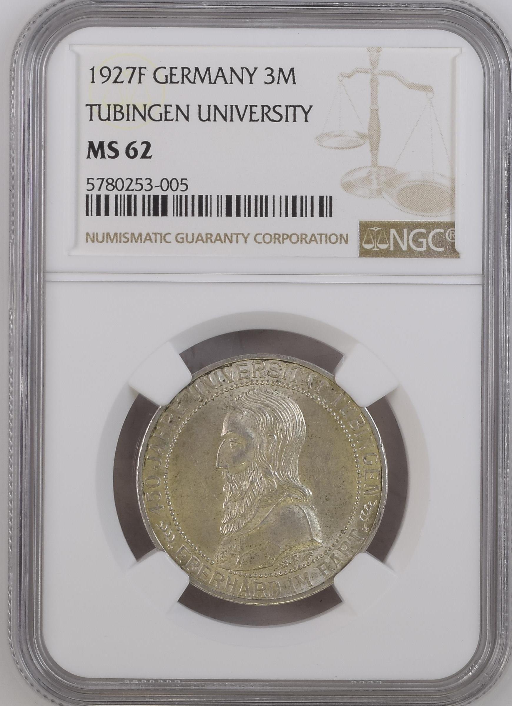 3 рейхсмарки (Тюбінгенський університет) 1927F ngc ms62