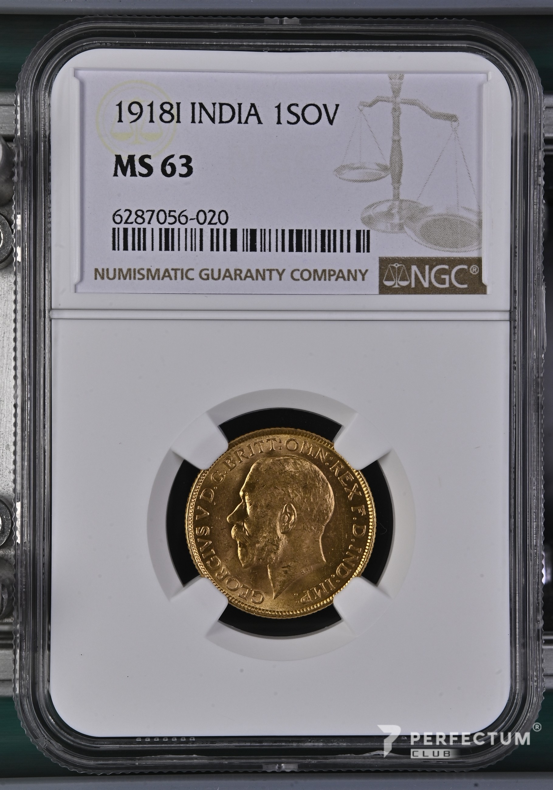 1 суверен — Георг V (монетний двір Бомбея) 1918I ngc ms63