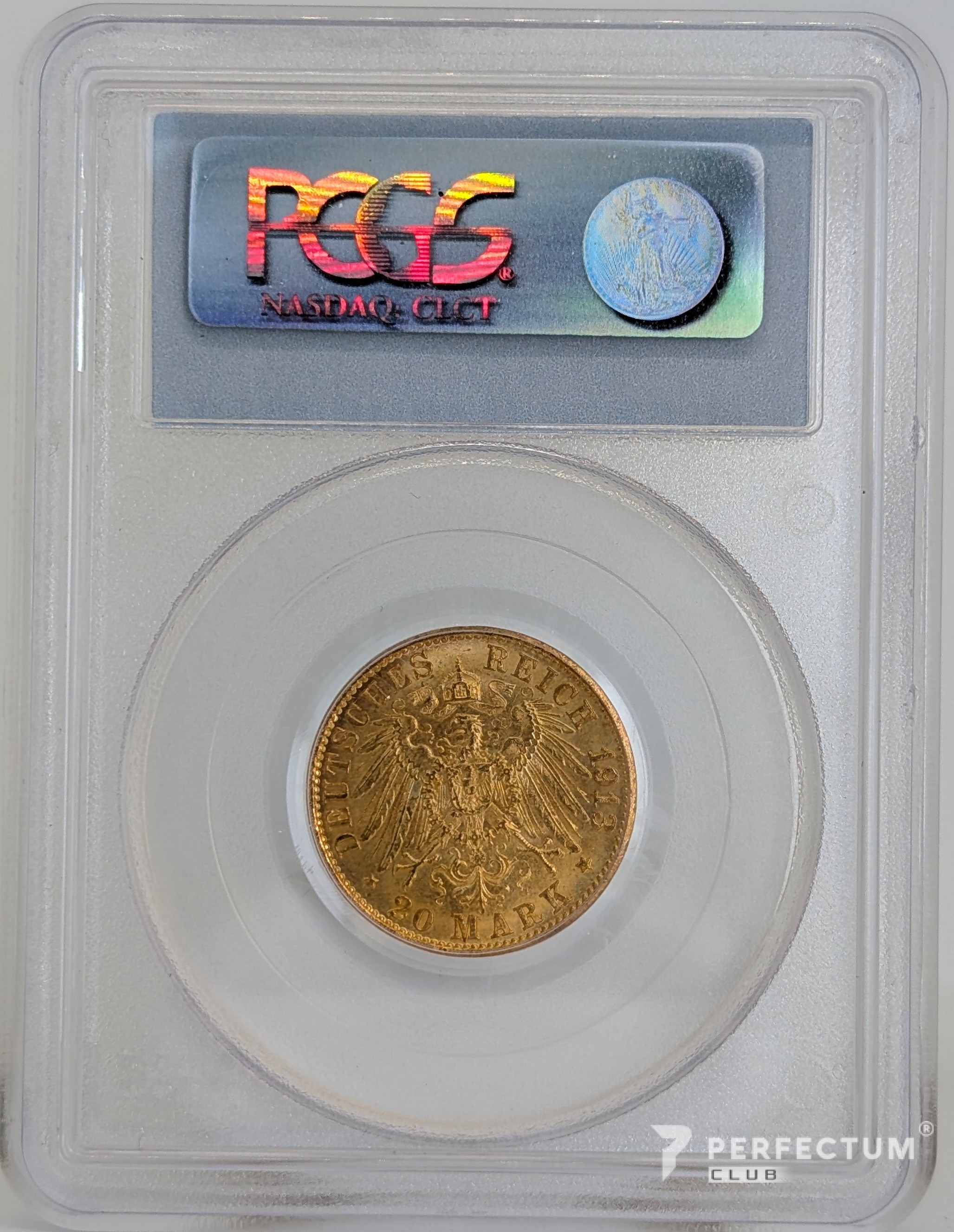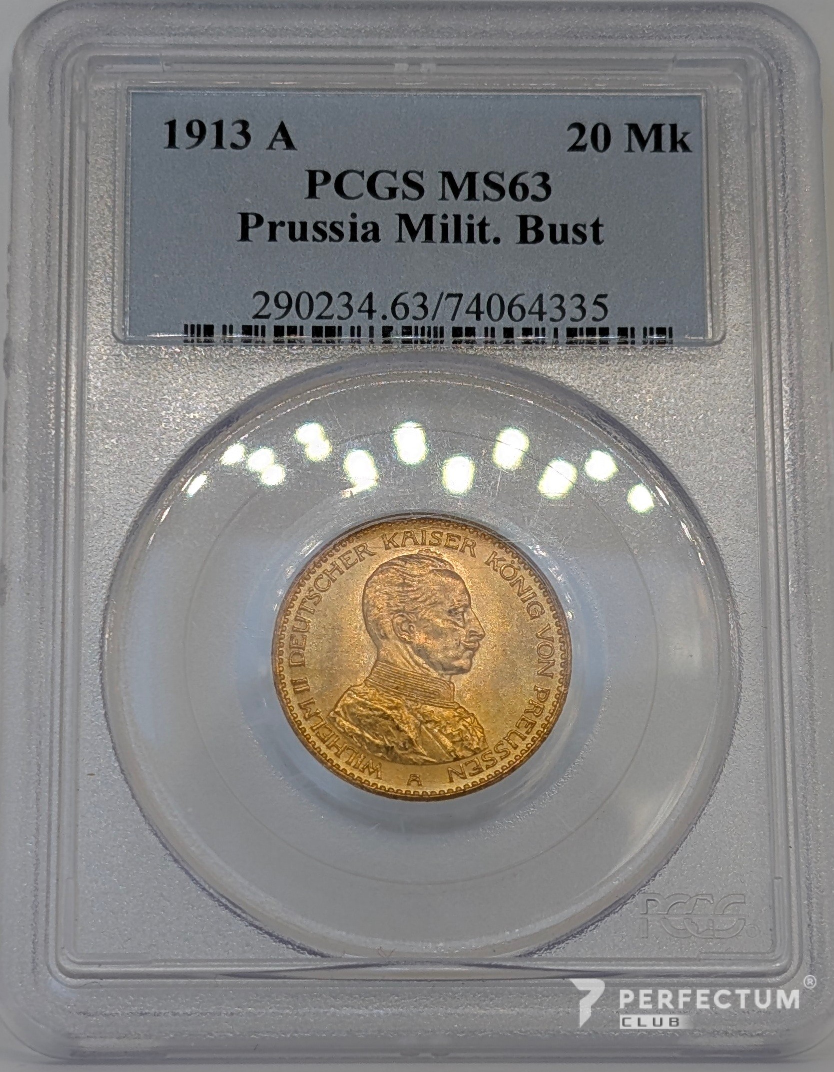20 марок — Вільгельм II 1913A мундир pcgs ms63