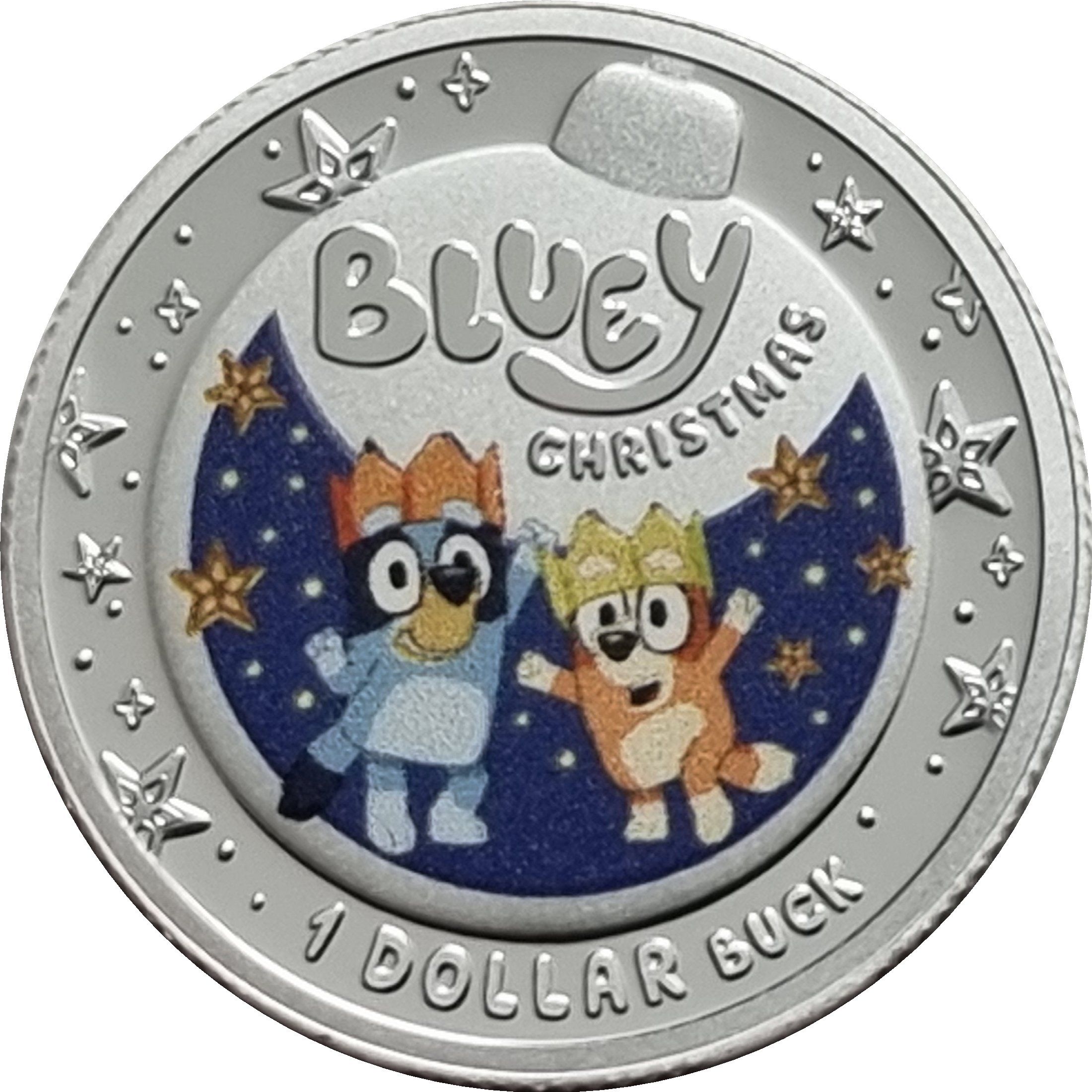 1 доллар — Карл III (1-й портрет — Bluey Christmas 2025 — серебро; цветная)