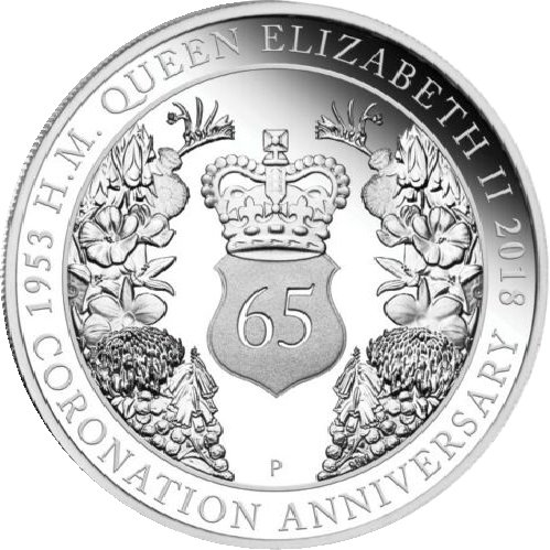 Название: 1 доллар — Елизавета II (4-й портрет — 65-летие коронации — серебряная пробная монета)