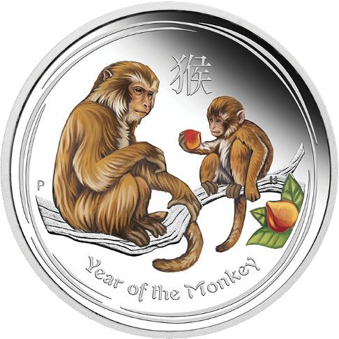 1 доллар — Елизавета II (4-й портрет — Год Обезьяны — Серебряная монета)