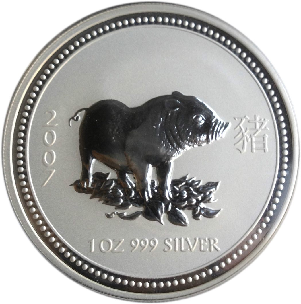 1 доллар — Елизавета II (4-й портрет — Год Свиньи — Серебряная монета)