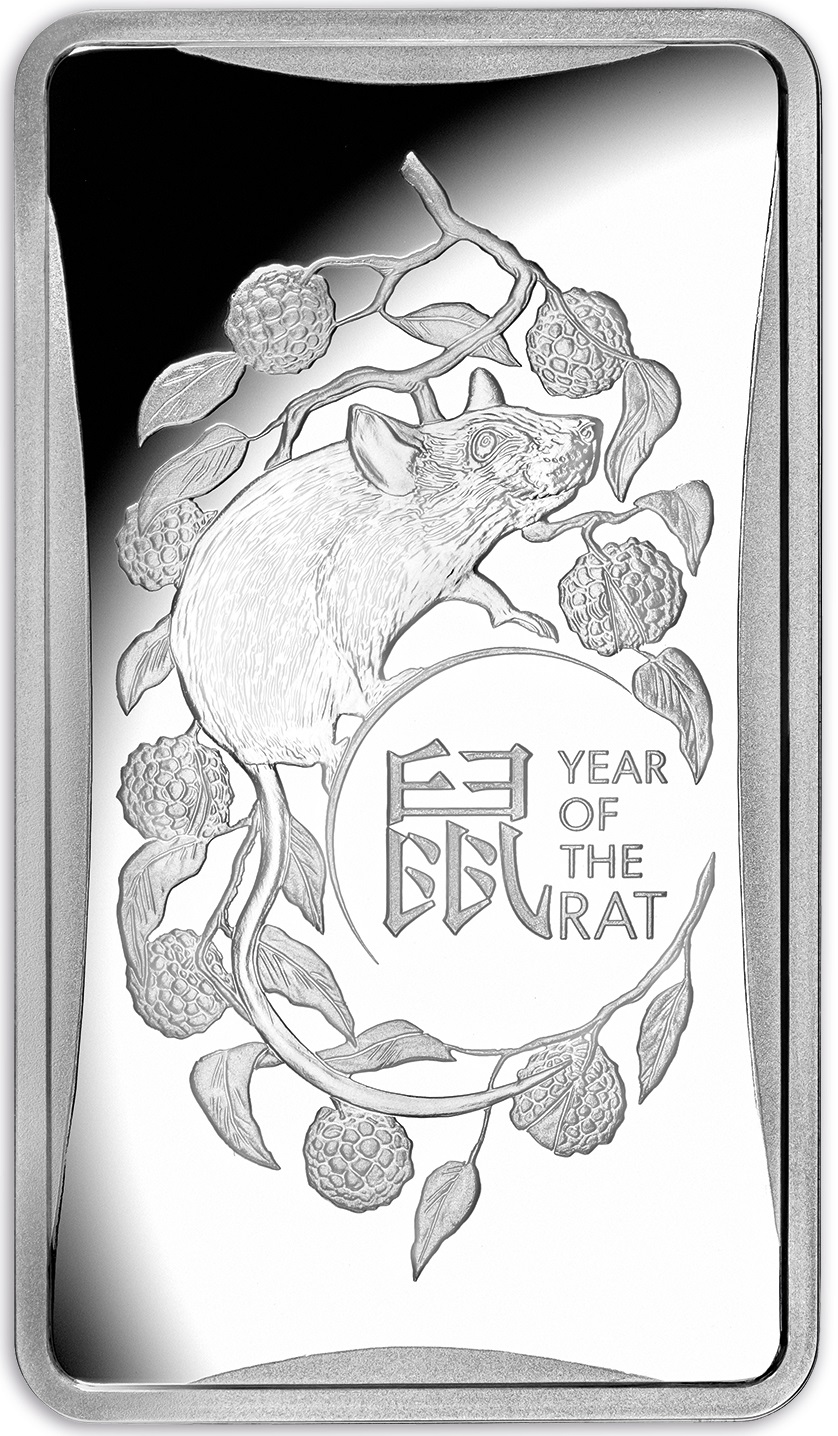 1 доллар — Елизавета II (6-й портрет — Год Крысы; серебряный слиток)