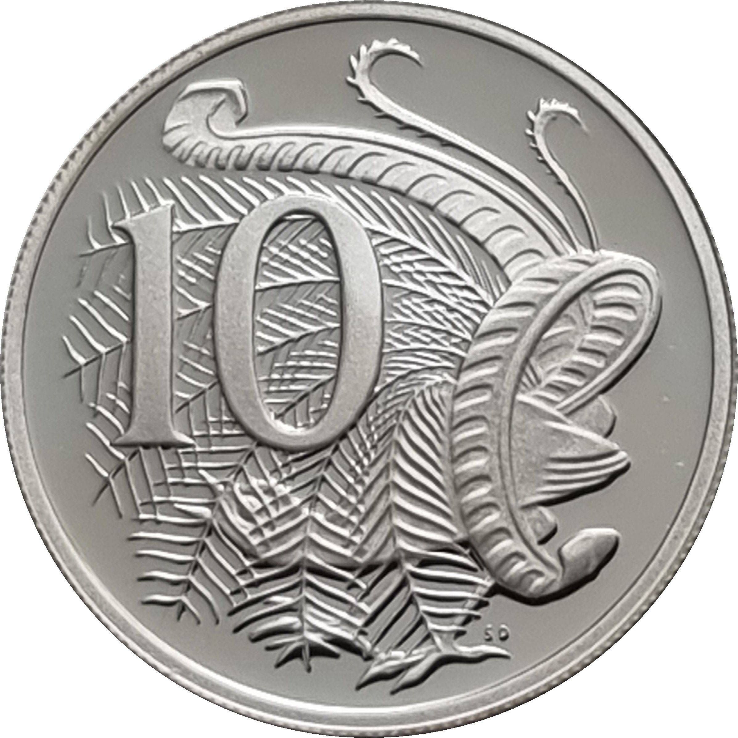 10 центов — Елизавета II (2-й портрет; чистое серебро, пробная монета)