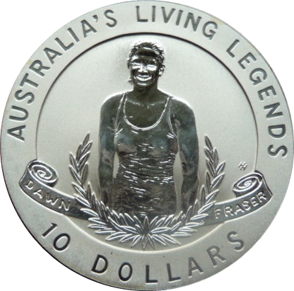 10 долларов — Елизавета II (3-й портрет — Доун Фрейзер — матовый пробный оттиск)