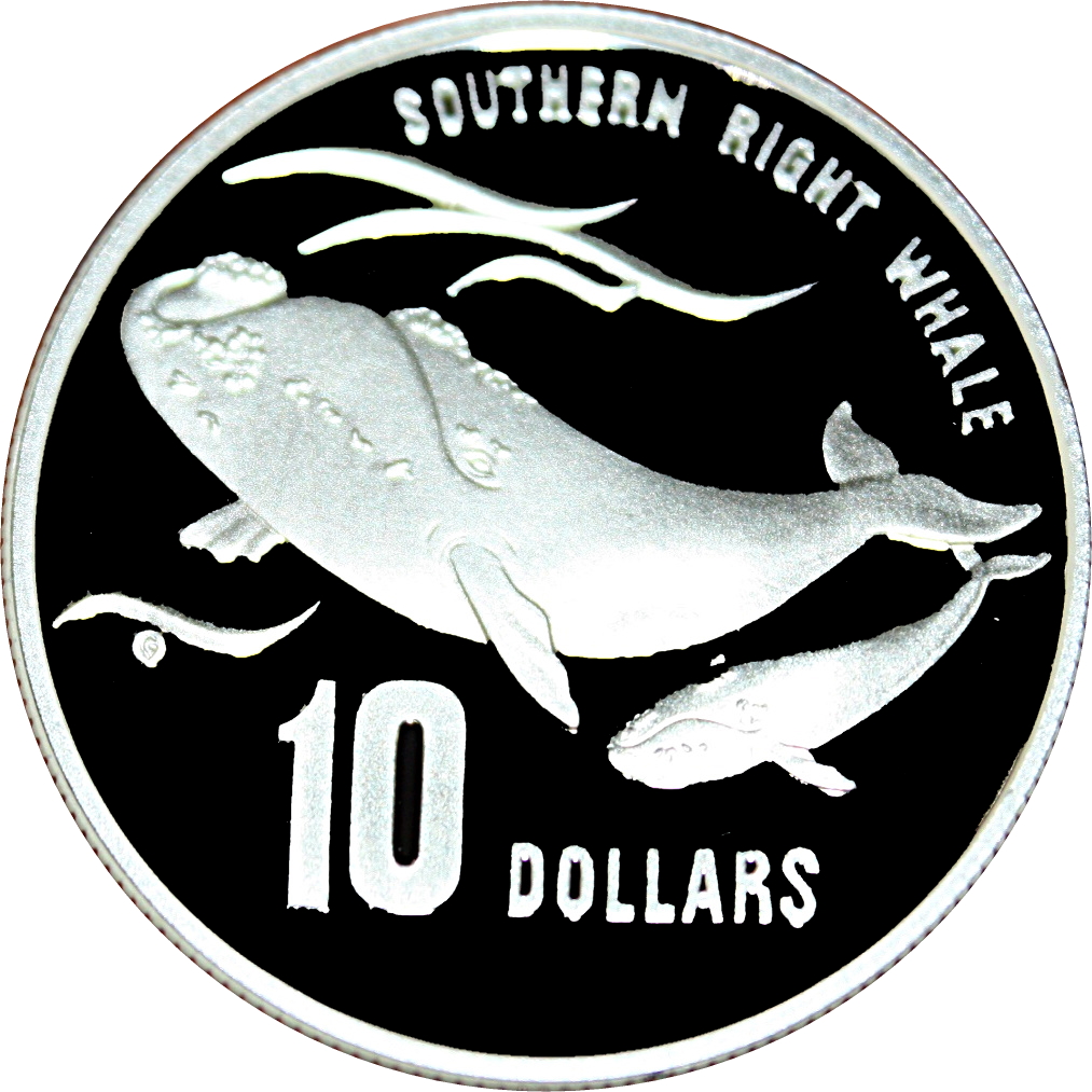 Название: 10 долларов — Елизавета II (3-й портрет — южный гладкий кит — пиедфорт)