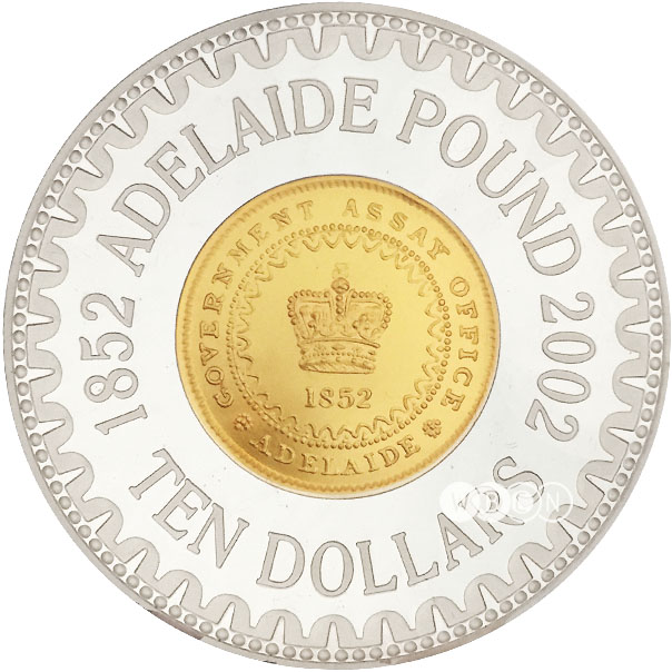 Название: 10 долларов — Елизавета II (4-й портрет — Аделаидский фунт — биметаллическая позолоченная монета)