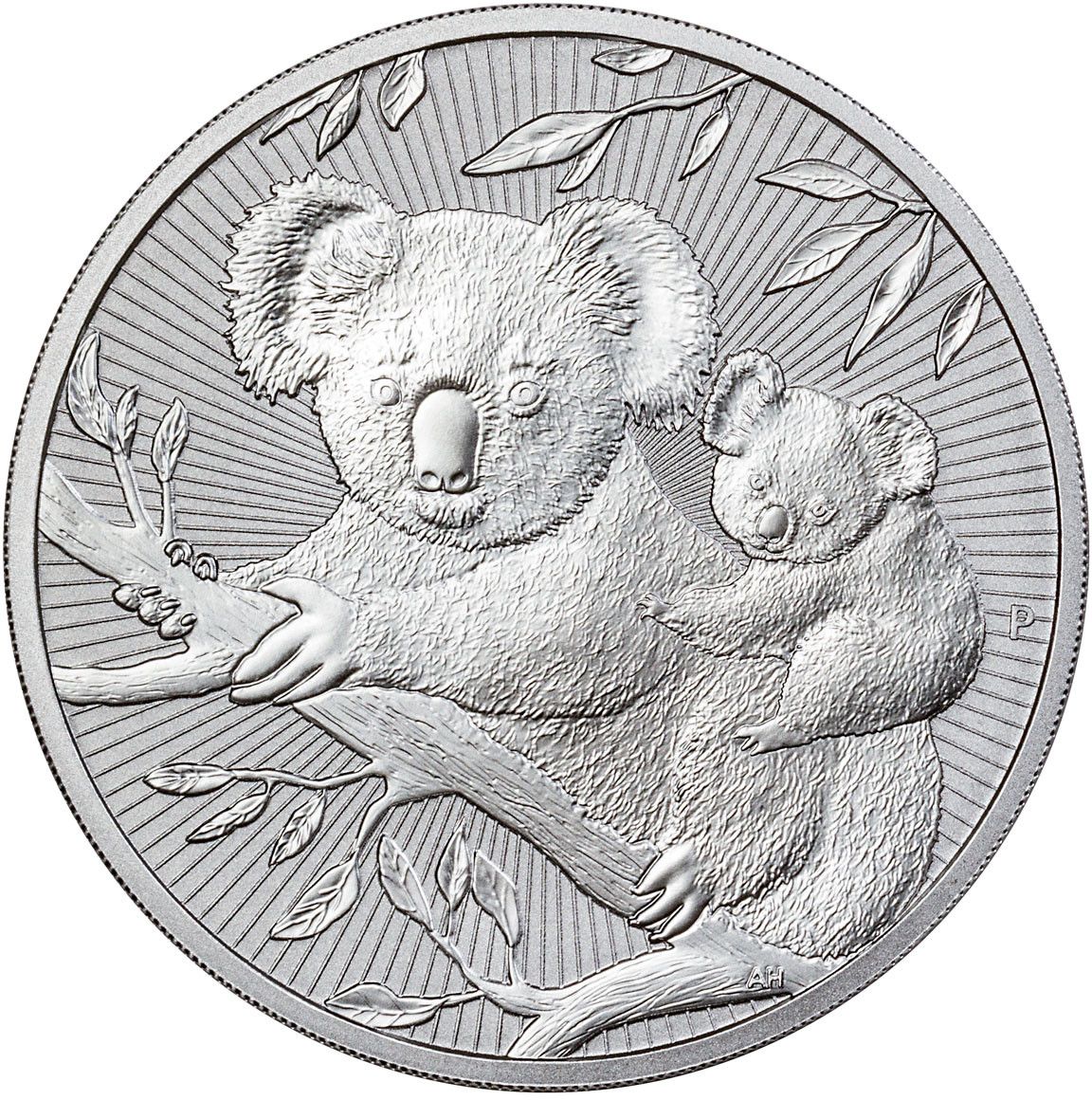 Описание: Мать-коала сидит на ветке, неся на спине своего детёныша. В дизайне также присутствуют листья эвкалипта.