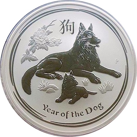 10 долларов — Елизавета II (4-й портрет — Год Собаки — Серебряная монета)