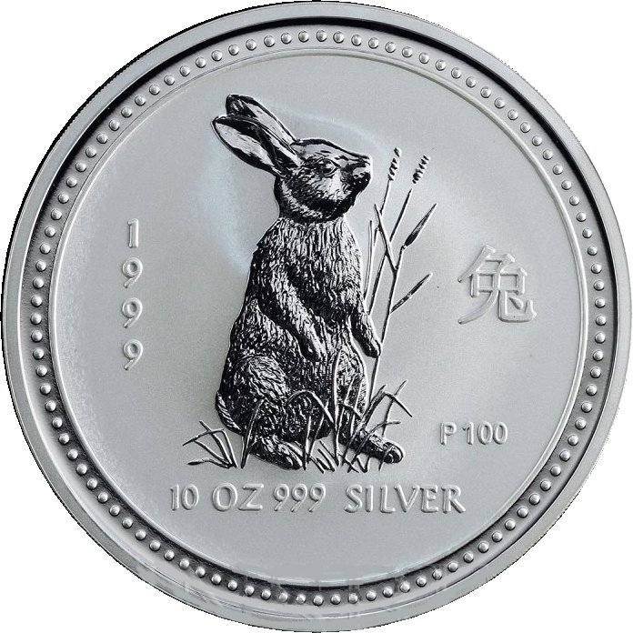 10 долларов — Елизавета II (4-й портрет — Год Кролика — Серебряная монета)
