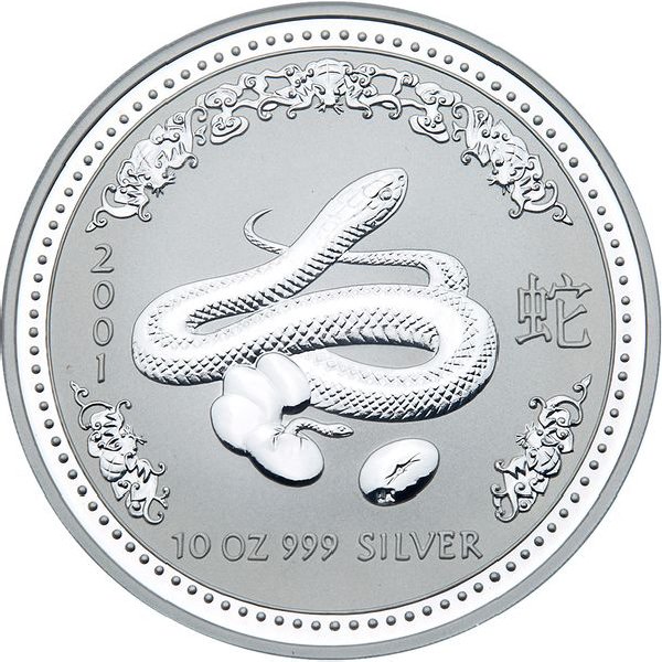 10 долларов — Елизавета II (4-й портрет — Год Змеи — Серебряная монета)