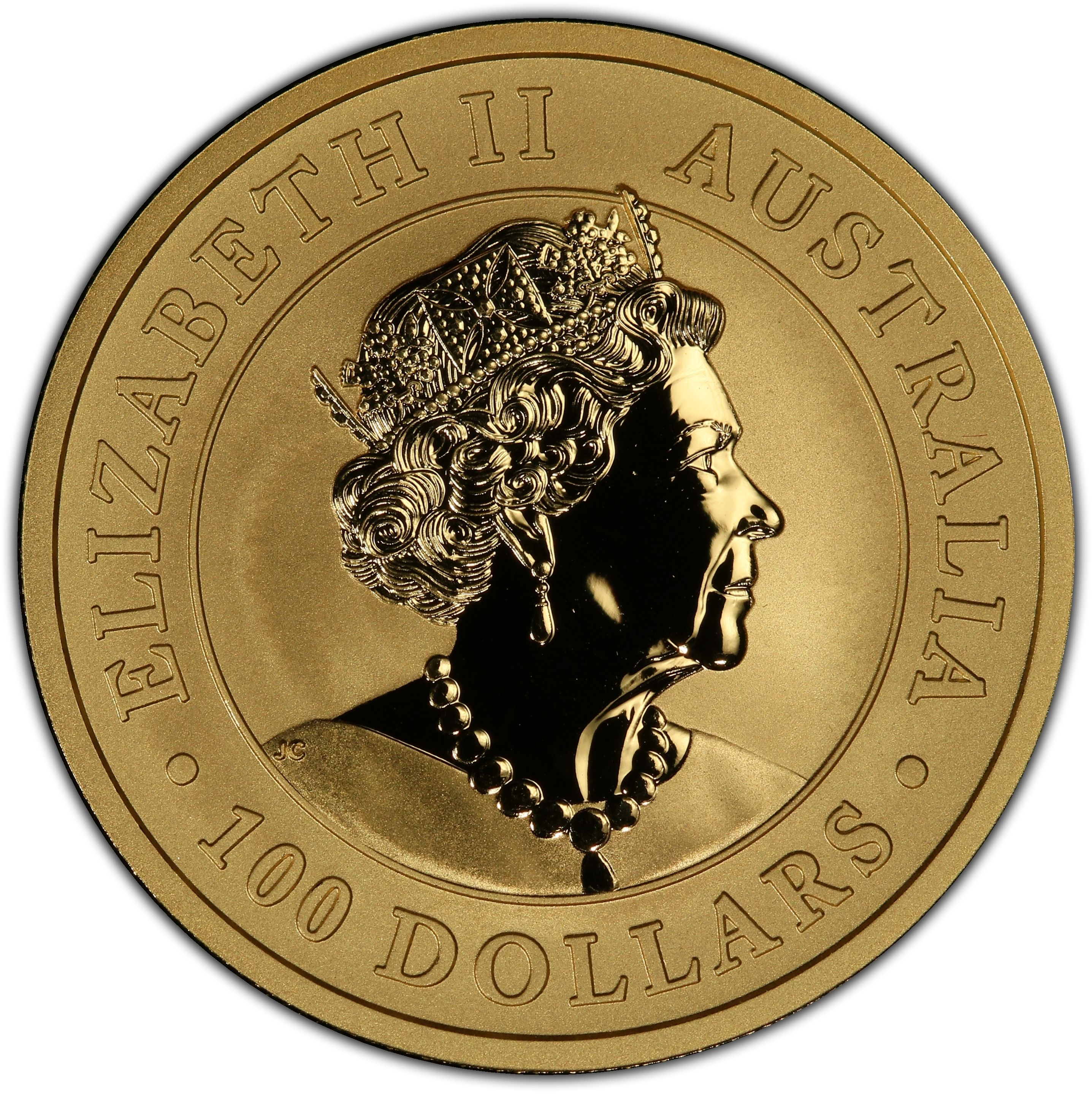 100 долларов — Елизавета II (6-й портрет — Эму — Золотая монета)
