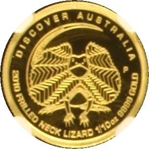15 долларов — Елизавета II (4-й портрет — ящерица с воротником — золотая проба)